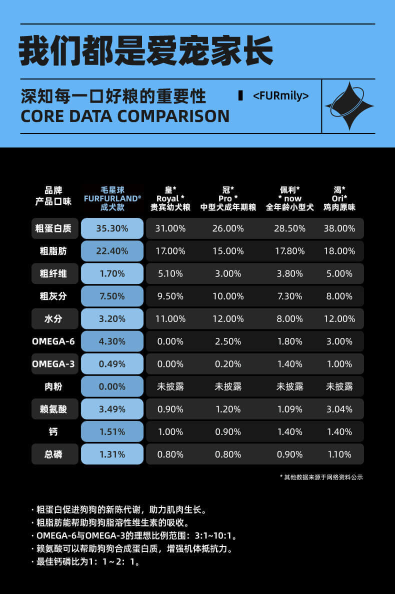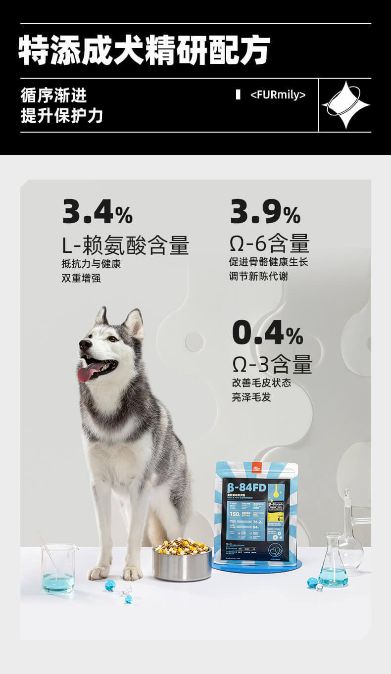 10% 冻干超量添加成犬粮。成犬主粮原料比例:76.2%鲜肉占比(*鲜肉占总肉源比例)+84%动物性原料,鸡胸肉+蛋黄+鸡肉松 3种类型冻干,超高适口性,200亿超高益生菌含量。.